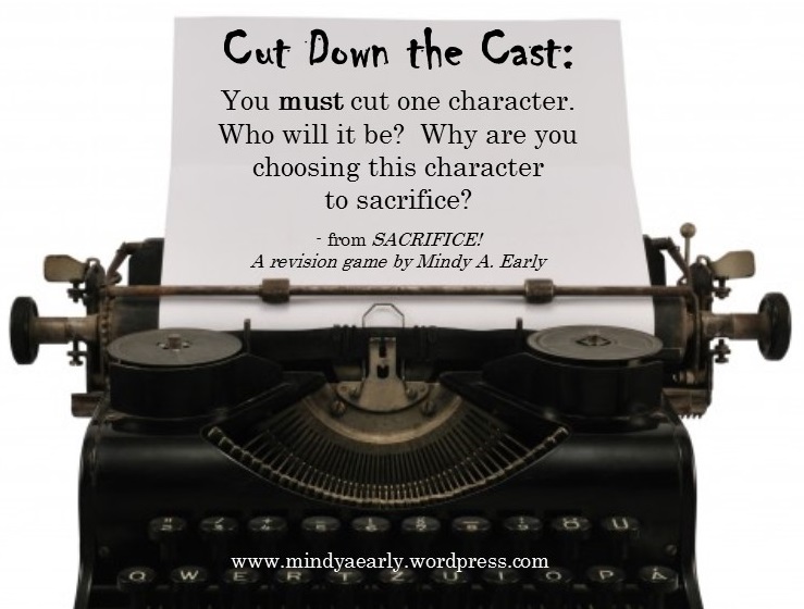 3 – Writers can save themselves from making a sacrifice in 3 categories of their choosing; however, to do so they must commit to a specific revision idea that will make their draft stronger in that category. (For example, instead of sacrificing a character in Cutting Down the Cast, a writer can commit to making a specific revision choice that will make weakest character a more integral part of the story.)